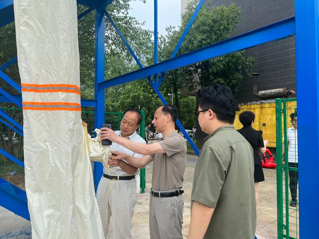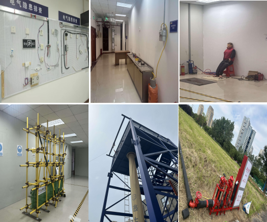 王会长等领导一行检查了室外技能实操场地和设施、室内消防水泵房、消防控制中心、各隐患排查实用场景、微型消防站以及理论机考室、会议室、办公室、接待室等。随后召开了座谈反馈会。