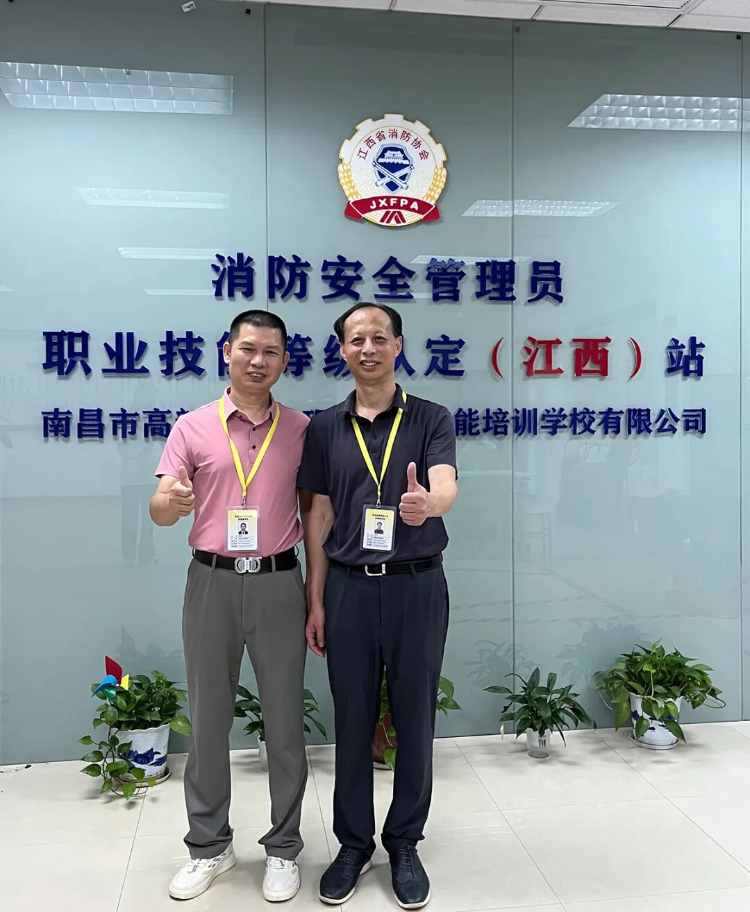 江西省首期消防安全管理员职业技能等级认定考试圆满完成发表时间:2024-09-04 14:36 点击蓝色文字关注我们 2024年9月3日,江西省消防协会组织首期消防安全管理员职业技能等级认定工作圆满完成,本次认定共有32人通过报名审核,经过一天的严格考核,共有31人顺利通过,认定期间,中国消防协会委派职业技能等级认定质量督导员、长沙市消防行业协会副秘书长廖玉荣现场全程督导,江西省消防协会副会长兼秘书长马学义全程陪同。