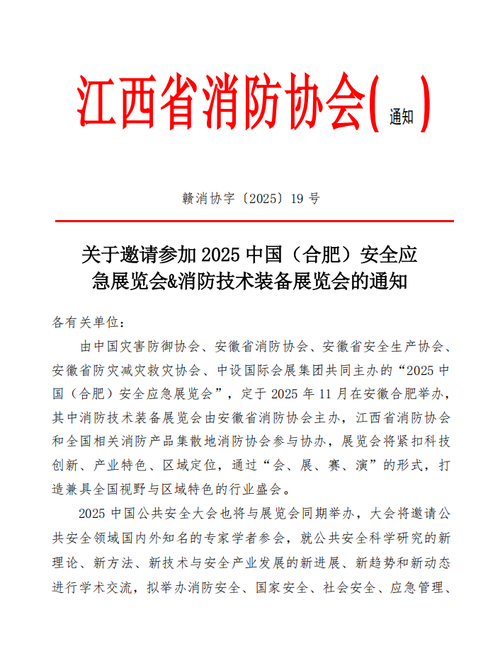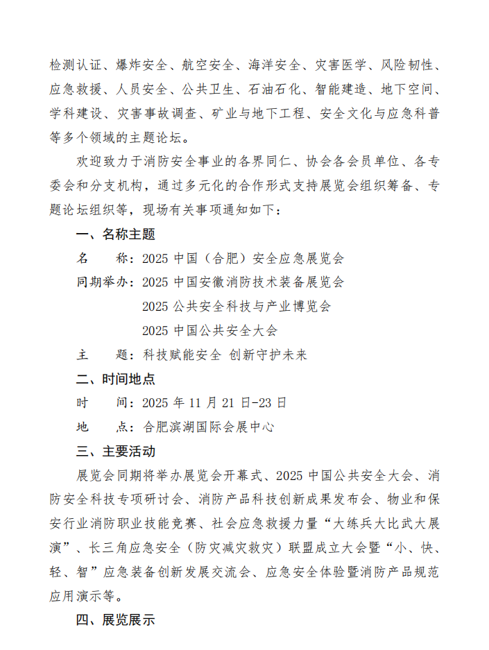 关于邀请参加 2025 中国(合肥)安全应急展览会&消防技术装备展览会的通知